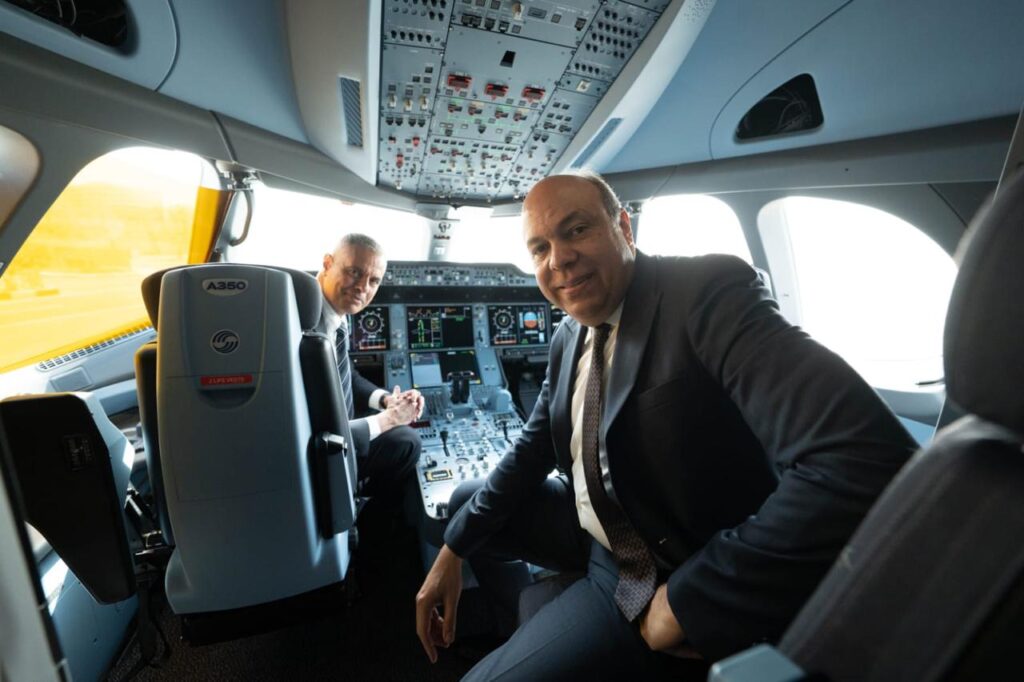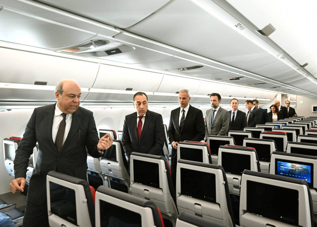 واستمع رئيس الوزراء إلى شرح مفصل حول إمكانات الطائرة الجديدة من طراز Airbus A350-900، وما تتميز به من تقنيات فنية وخدمية، وفق أحدث التجهيزات التكنولوجية، حيث أشار الدكتور سامح الحفني، إلى أن شركة “مصر للطيران” تعد أول شركة في شمال أفريقيا تشغل هذا الطراز، مضيفا أن هذه الطائرة تأتي ضمن صفقة تم توقيعها مع شركة “Airbus” لضم عدد من الطائرات الحديثة من هذا الطراز، في إطار خطة شاملة لتحديث الأسطول الجوي وتعزيز التوسع المستقبلي في شبكة خطوط “مصر للطيران” الجوية، خاصة إلى الوجهات بعيدة المدى، بما في ذلك مدن في الولايات المتحدة مثل لوس أنجلوس وعدد من الوجهات في شرق آسيا.