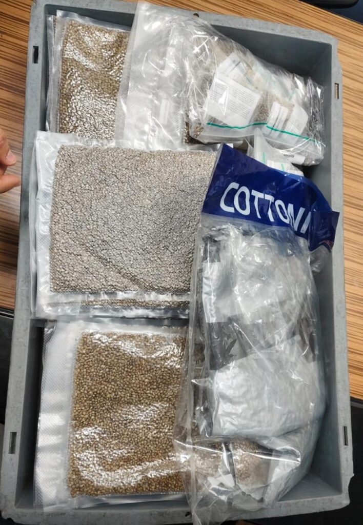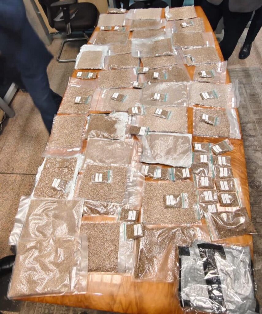 محضر ضبط رقم 119 لسنة 2025 في 9 نوفمبر ضد راكب اجنبي حاول تهريب 50 قطعة حشيش بوزن خمسة كيلو جرام تقريبا داخل “وسادات”.