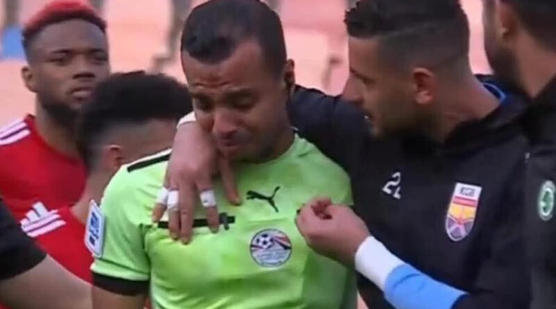بكاء الحكم مصطفى الشهدي بعد إصابته وخروجه من مباراة مودرن سبورت والجونة