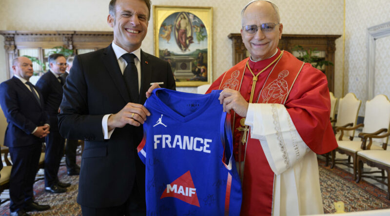ماكرون يهدي بابا الفاتيكان قميص منتخب فرنسا لكرة السلة موقعا من اللاعبين