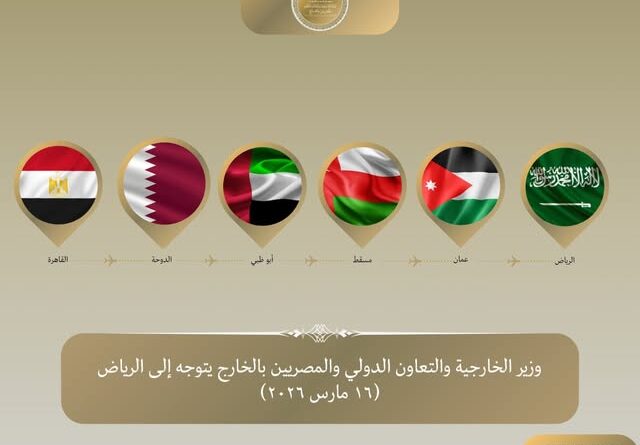 توجه وزير الخارجية والتعاون الدولي والمصريين بالخارج الدكتور بدر عبد العاطي إلى الرياض، اليوم الإثنين، تنفيذا لتوجيهات فخامة السيد رئيس الجمهورية- في المحطة الخامسة والختامية من جولته لعدد من الدول العربية الشقيقة، لنقل رسالة تضامن كاملة إلى جانب المملكة العربية السعودية الشقيقة في ظل الظرف الدقيق الذي تمر به المنطقة.
