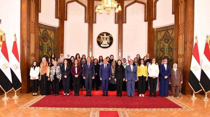السيسي يلتقط صورة تذكارية مع المشاركات في احتفالية المرأة المصرية بقصر الاتحادية