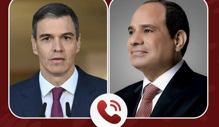 أكد الرئيس المصري عبد الفتاح السيسي، خلال اتصال هاتفي مع رئيس وزراء إسبانيا، ضرورة تضافر الجهود الإقليمية والدولية لوقف الحرب واحتواء التصعيد الجاري في المنطقة.