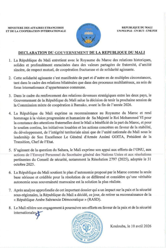مالي تسحب اعترافها ب “جبهة البوليساريو” في تطور دبلوماسي جديد لصالح مغربية الصحراء