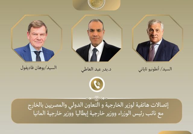 جرى اتصالان هاتفيان بين د. بدر عبد العاطي وزير الخارجية والتعاون الدولي والمصريين بالخارج مع كل من “أنطونيو تاياني” نائب رئيس الوزراء وزير خارجية إيطاليا و “يوهان فاديفول” وزير خارجية ألمانيا، لتبادل الرؤى والتقديرات حول مستجدات الأوضاع في المنطقة في أعقاب إعلان الولايات المتحدة وإيران عن وقف إطلاق النار وعقد مفاوضات مرتقبة بين الجانبين فى إسلام آباد.