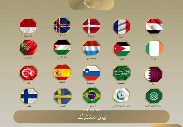 وجدد الوزراء التزامهم الراسخ بتحقيق سلام عادل وشامل ودائم في الشرق الأوسط على أساس حل الدولتين، بما يتماشى مع مبادرة السلام العربية وقرارات الأمم المتحدة ذات الصلة، وعلى أساس خطوط الرابع من يونيو عام 1967.