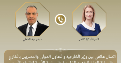 تلقى الدكتور بدر عبد العاطي وزير الخارجية والتعاون الدولي والمصريين بالخارج اتصالاً هاتفياً من نواف سلام رئيس مجلس الوزراء اللبناني، لبحث التطورات المتسارعة والتصعيد العسكري الراهن في لبنان الشقيق.